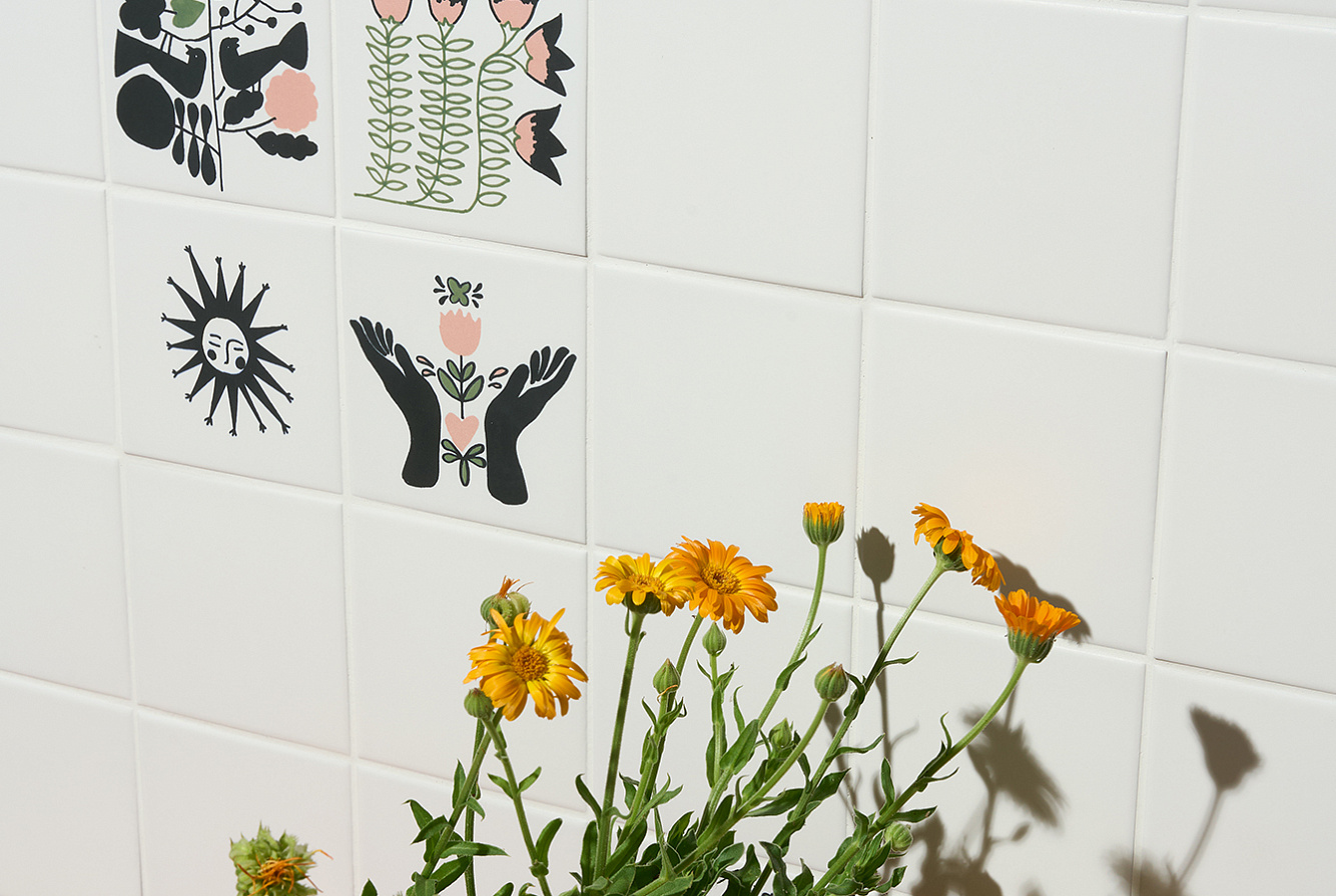 Каждая история — это декорированный керамогранит с 50 вариантами паттерна, доступный как в глянцевом, так и матовом исполнении. В каждой коробке — микс из 60 плиток, случайным образом упакованных в коробку.