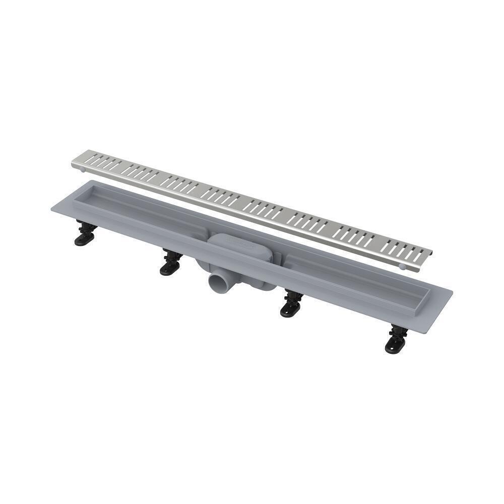 Водоотводящий желоб Монтажный набор: шуруп Ø4,2×38 – 8 шт., дюбель Ø8 – 8 шт. Самоклеящиеся гидроизоляционные ленты Перфорированная решетка из нержавеющей стали Simple 10 матового цвета в охранной пленке Монтажный набор для крепления регулируемых ножек: шуруп 4,2×9,5 – 8 шт. Комбинированный гидрозатвор Регулируемые ножки 4 шт.