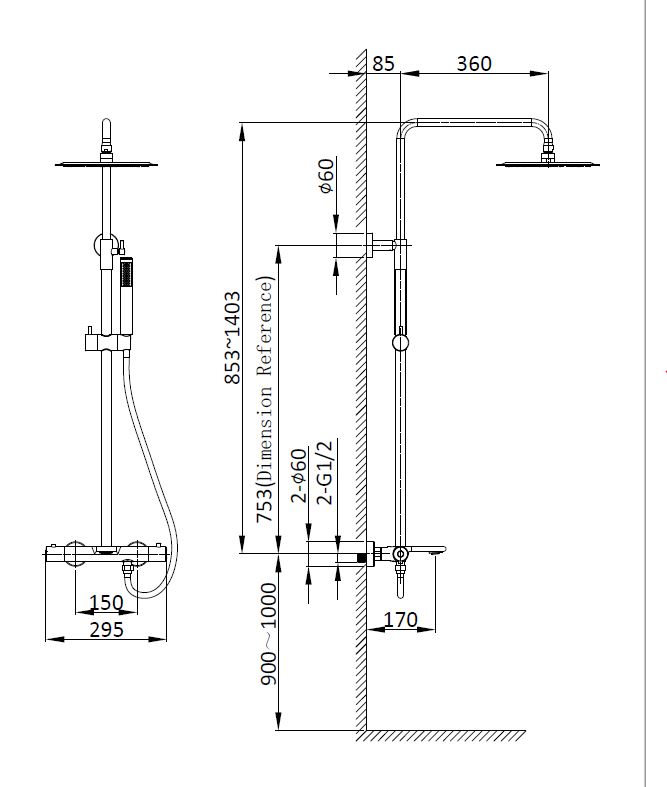 Vincea Душевая стойка Vogue VSFS-1V1TCH термостатическая, хром