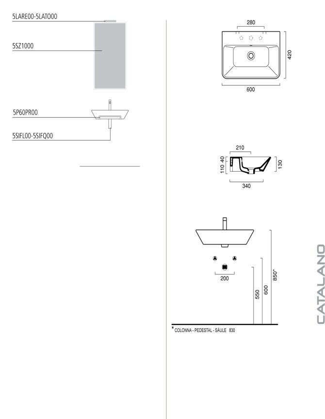Техническая схема: Catalano Proiezioni умывальник 42х60 см 60PR
