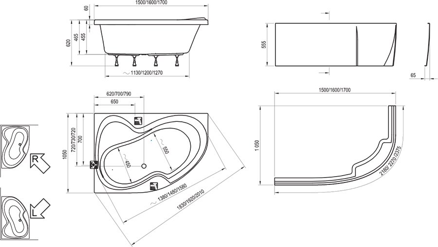 • исполнение: левый и правый (L/R)